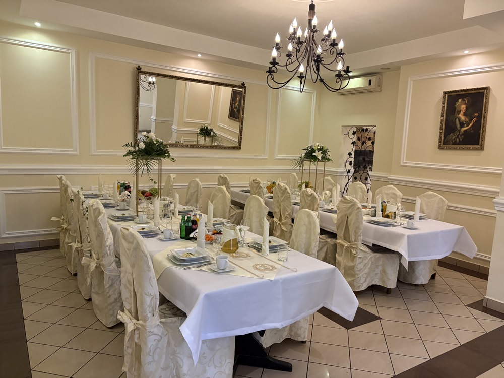 Restauracja Maestro to również idealne miejsce na zorganizowanie niezapomnianego przyjęcia weselnego. Eleganckie wnętrza – wyśmienita kuchnia i niepowtarzalny nastrój sprawią, że ten Najważniejszy dzień w Waszym życiu będzie najpiękniejszym. Doświadczenie jak i wyposażenie, którym dysponujemy pozwalają nam spełnić najróżniejsze oczekiwania zarówno dużych przyjęć jak i małych kameralnych, ale zawsze pozostających jako niezapomniane przeżycie.